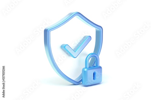 Obraz premium 3d security shield with checkmark and padlock, isolated on white background