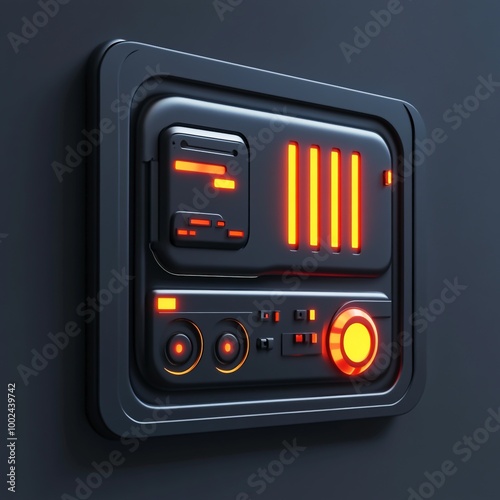 © Rjdp, Obraz premium 3D Security System Panel Icon: Control Center Interface Illustration Logo