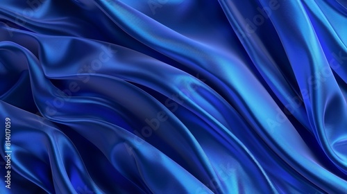 © Ashy studio, Fototapeta premium 3D shining blue wave silk background with luxury relaxing glowing curves