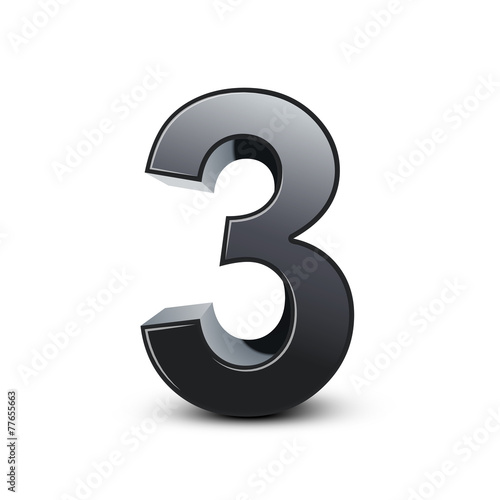 © JoyImage, Naklejka premium 3d shiny black number 3
