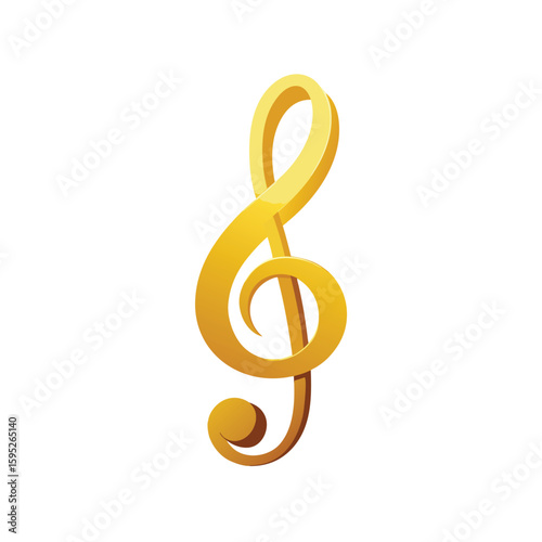 Naklejka premium 3D Shiny Golden Treble Clef on White Background