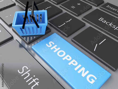 © Mego-studio, Fototapeta premium 3d Shopping basket on computer keyboard. Online shopping concept