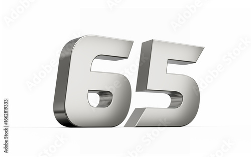 © Aqsa, Fototapeta premium 3d Silver number 65 Sixty five sleek metallic look isolated on white background, 3d illustration
