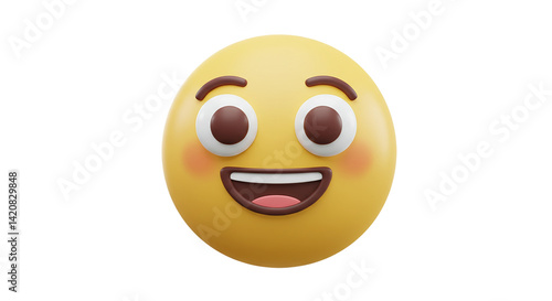 © PNG spot, Fototapeta premium 3D smiling emoji face with excited expression isolated on white background, perfect for digital communication, reaction icons, emoji packs, chat apps, and expressive fun messaging graphics