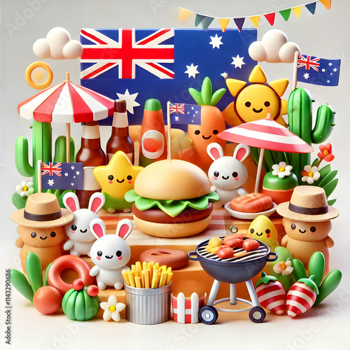 © HaJung, Obraz premium 3D Soft Abstract Australia Day BBQ Background with Festive Colors and Copy Space for Community Celebration