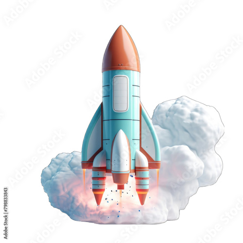 © Zeeshan, Obraz premium 3d space rocket with smoke on white background