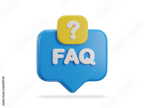 © sajjat, Fototapeta premium 3d speech bubble with FAQ icon vector illustration