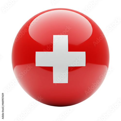 Fototapeta premium 3D sphere with Switzerland national flag white cross on red on transparent...