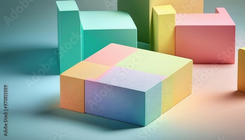 © pengedarseni, Obraz premium 3D Square podium for mock up, vibrant colorful. Best for product presentation.
