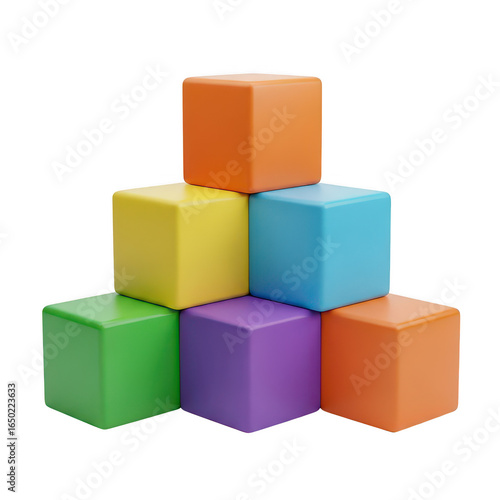 © Mohammad, Obraz premium 3d stacked colorful toy block cubes isolated on transparent background
