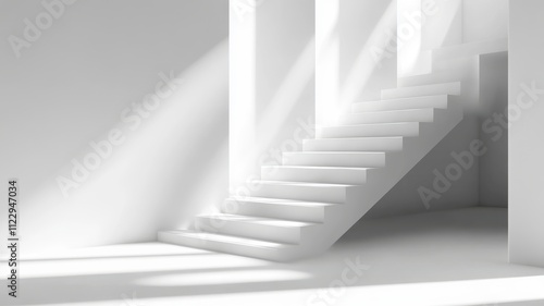 Fototapeta premium 3D stairs illuminated with sharp shadows, rhythmic and geometric design....