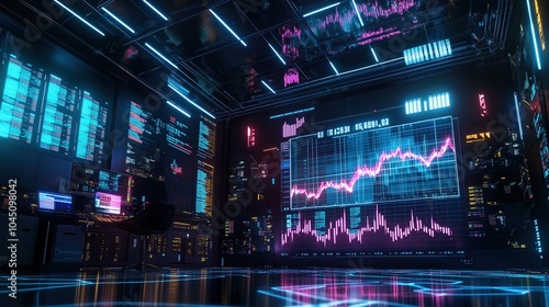 © Myxafly, Obraz premium 3D Stock Market Data Visualization Room