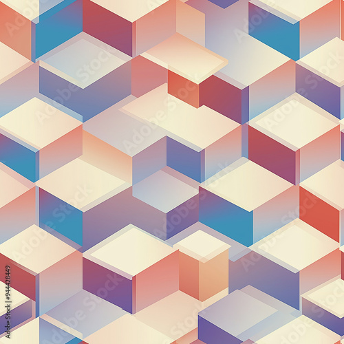 © MelissaMN, Obraz premium 3D style abstract background with cubes. Seamless pattern