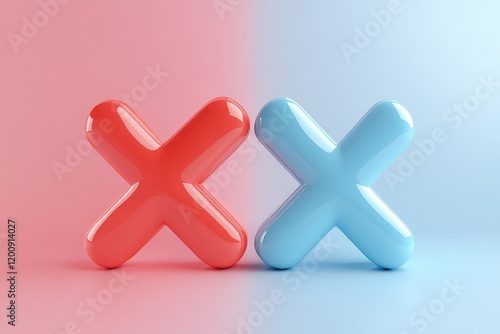 Obraz premium 3D-style checkmark and cross symbols with glossy effects for professional...