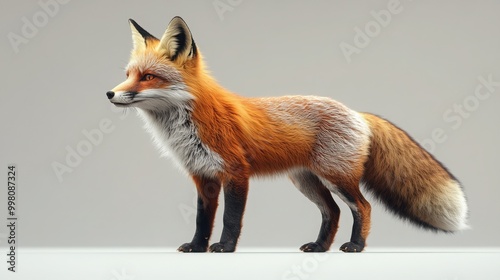 © Junaed Ahamed Sakib, Fototapeta premium 3D Style Red Fox Standing Alert on a Gradient Background for Creative Projects
