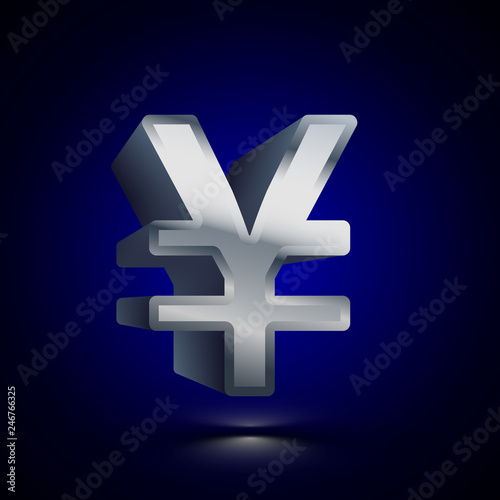 © Whitebarbie, Obraz premium 3D stylized Yen icon. Silver vector icon. Isolated symbol illustration on dark background.
