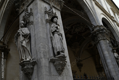 © Richard Villalon, Fototapeta premium Détail architectural de la Loggia della Mercanzia de Sienne avec des statues