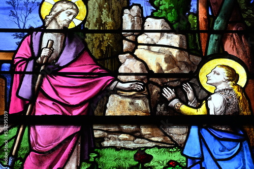 © compagnie-17, Fototapeta premium détail d'un vitrail de l'église Saint-Aignan de Chartres en France