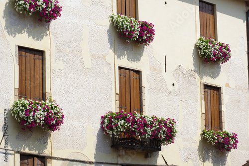 Naklejka premium Détails architecturaux du village alpin d'Asolo