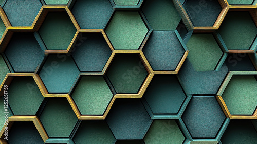 © Fiva, Obraz premium 3D teal & gold honeycomb pattern background for tech or design projects