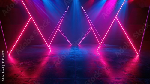 © Naknakhone, Naklejka premium 3d technology abstract neon light background, empty space scene, spotlight, dark night, virtual reality, cyber futuristic sci-fi background. copy space for text.