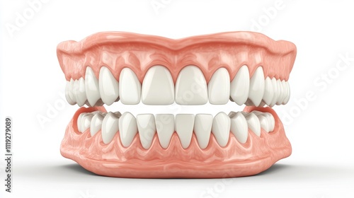 Fototapeta premium 3D Teeth Model on White Background, Realistic Dental Illustration Generative AI