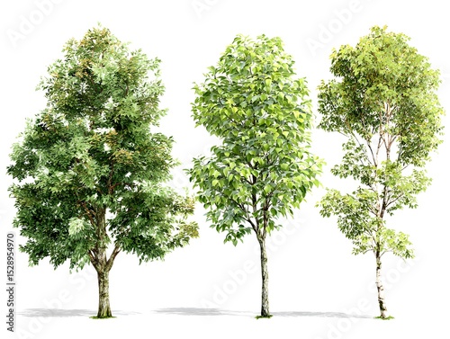 © CollyWang, Obraz premium 3D tree models on white background