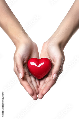 © madyshah783, Fototapeta premium 3D two hands holding glossy heart icon alone on transparent background
