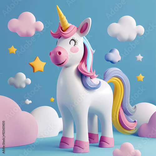 © Akharadat, Naklejka premium 3D unicorn in white background vector image