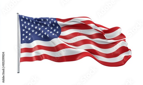 Fototapeta premium 3D USA flag waving in the wind, with realistic folds and movement, isolated on a white background