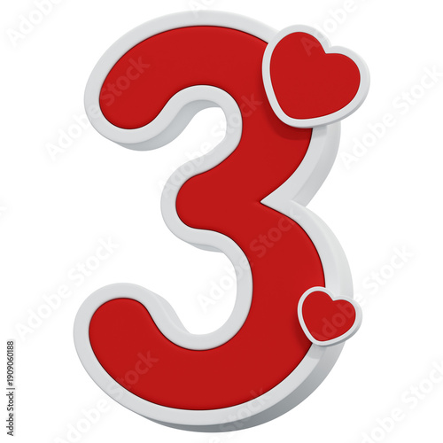 Fototapeta premium 3D Valentine Number 3
