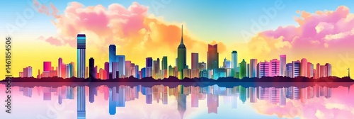 © Brian, Fototapeta premium 2d vector johannesburg, south africa downtown skyline