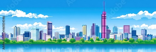© Brian, Fototapeta premium 2d vector johannesburg, south africa downtown skyline