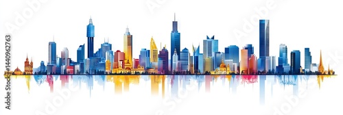 © Brian, Fototapeta premium 2d vector melbourne downtown skyline