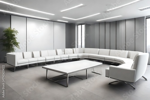 © Zohaib, Fototapeta premium 4D view, company meeting room, with luxery sofa's white colour, L-Shape , with grey background