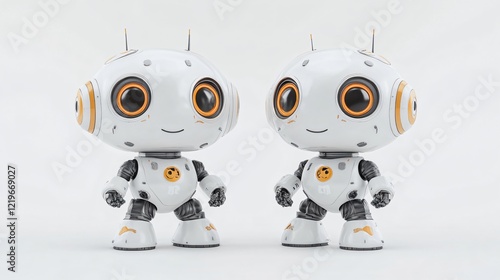 © Fari, Obraz premium 3D White Cute Robot Isolated on White Background