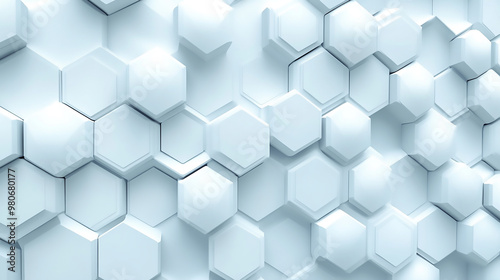 Fototapeta premium 3D White hexagonal art Futuristic abstract simple shapes background
