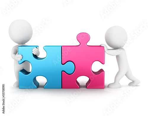 © toonbundles, Fototapeta premium 3d white people puzzle connection