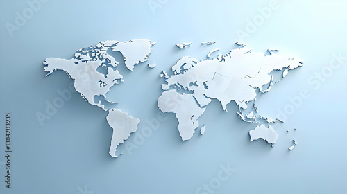 © Parsudi, Naklejka premium 3d White World Map On Light Blue Background