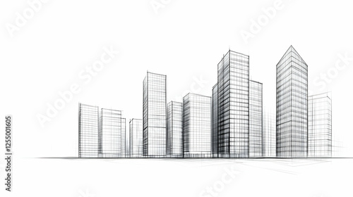 © share, Obraz premium 3D Wireframe Cityscape Illustration