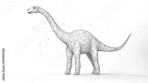 © Lesuna, Obraz premium 3D Wireframe Dinosaur on White Background