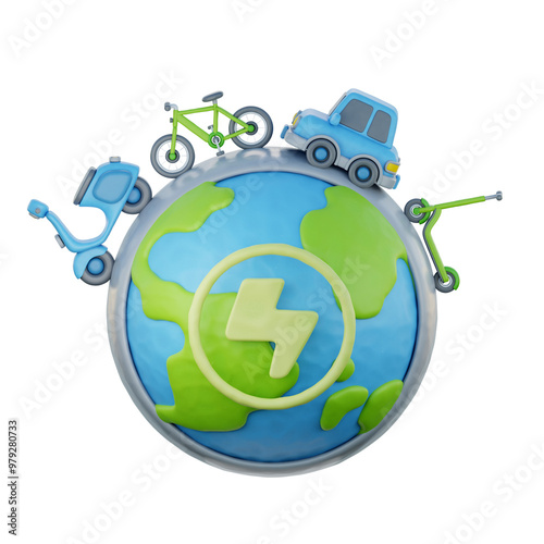 Fototapeta premium 3d World globe with electric vehicle, Environmental Alternative Energy, cartoon style, 3d rendering.