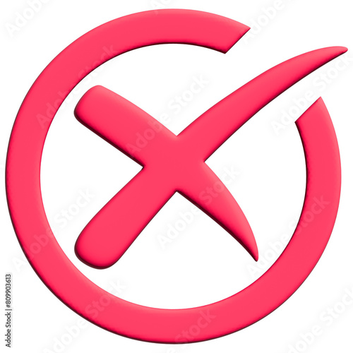 © Weera, Obraz premium 3d wrong icon, 3-dimension confirm and cancel sign of making agreement, positive or negative symbol