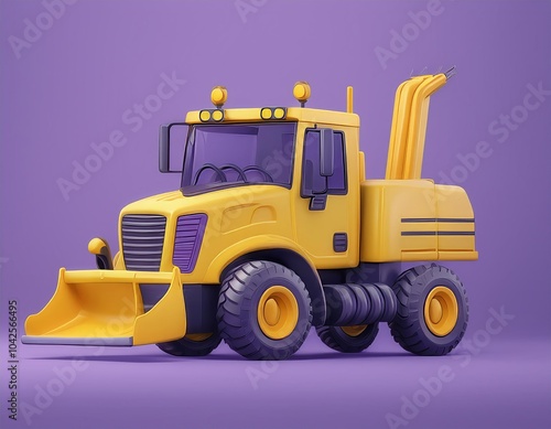 Naklejka premium 3D yellow construction vehicle with a snowplow attachment