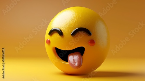 © Malik, Fototapeta premium 3D yellow emoji with playful expression, tongue out, winking, yellow gradient backdrop