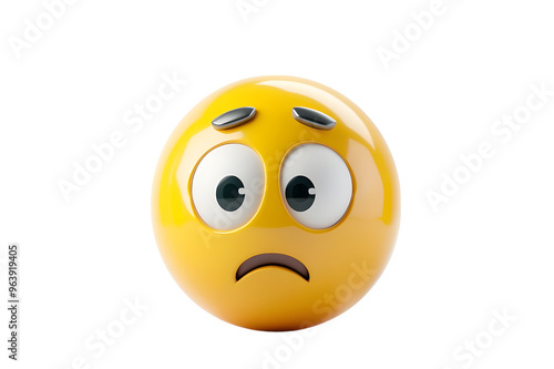 Fototapeta premium 3D Yellow Emoticon with Worried Expression. Isolated on transparent background