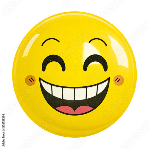 Fototapeta premium 3D Yellow Smiley Emoji with Big Grin and Glossy Surface