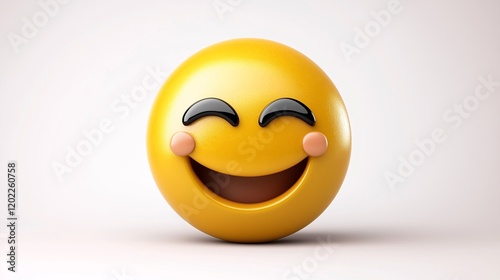 © Grzegorz Kuczynski, Fototapeta premium 3D yellow smiley face with a cheerful expression and blush, isolated on a white background.