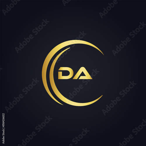 Obraz premium DA logo. D A design. White DA letter. DA, D A letter logo design. Initial letter DA linked circle uppercase monogram logo. D A letter logo vector design.