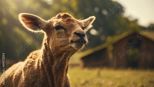 © DEER FLUFFY, Obraz premium Dabbing Animals Delight in a Sunlit Farm Ambiance on a.